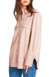 Upgrade your casual ensemble with this button-front top shaped from sleek faux leather.